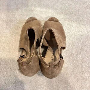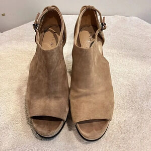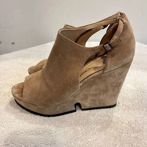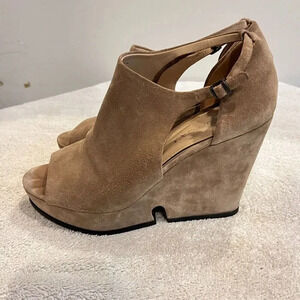 Via Spiga Womens Beige Suede Wren Platform Wedge Buckle 10/40 Open Toe Sandals