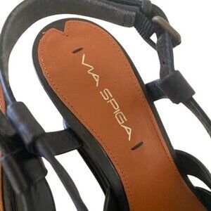 Elegantly crafted Via Spiga Women's Black Wedge Sandals in size 7. High-quality and comfortable, offering a sophisticated addition to any wardrobe.