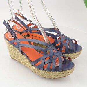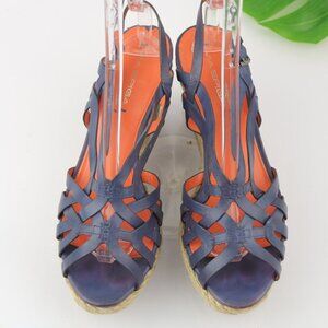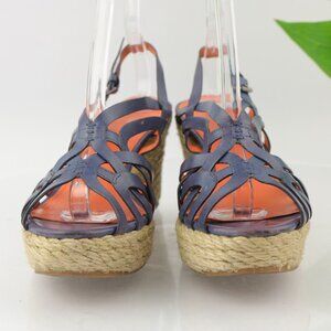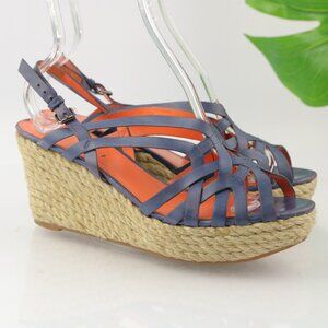 Via Spiga Womens Mable Sandal Size 10 Blue Leather Espadrille Platform Wedge