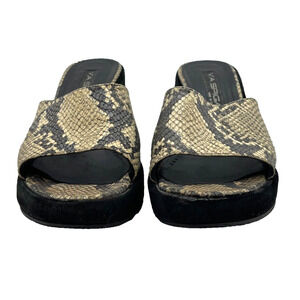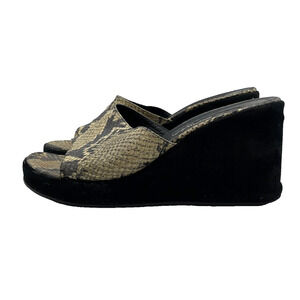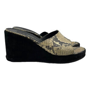 Via Spiga Women’s Phyton Wedge Peep Toe Animal Print Black Sandals Sz 8 M