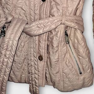 Via Spiga Womens Puffer Sz XS Pink Jacket Hood Belted classiccore Whimsicore Y2K