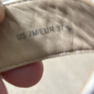 Elegant snakeskin pattern. Adjustable ankle strap. Perfect for versatile wear. Jute heals 3.5” size 7M jute has some variation in coloring #E E