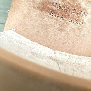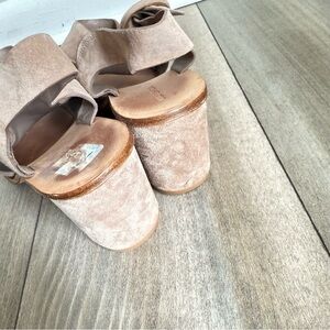 Via Spiga Women's Suede Block Heel Ankle Strap Sandals beige size 8.5