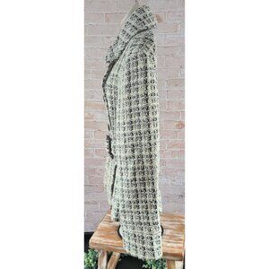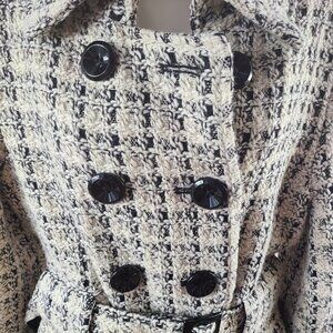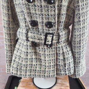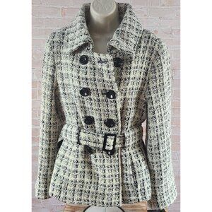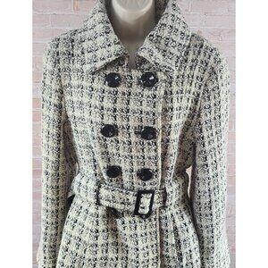 Via Spiga Wool Blend Mid Length Lined Belt Black/Cream Coat Jacket Women's Large