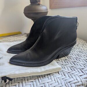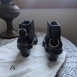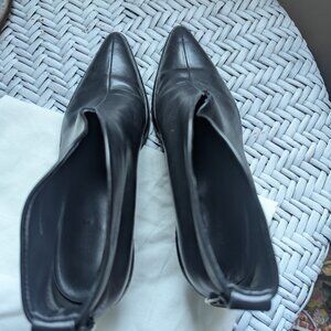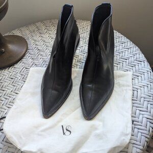 Via Spiga black leather ankle booties with metal detail on heel. Great condition, comfortable ankle bootie.