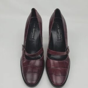 Via Spiga burgundy leather chunky heel shoes Size 8.5M
