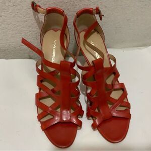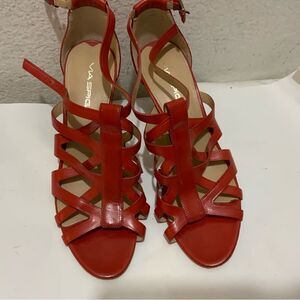 Via Spiga of Italy Women's Red Dressy 3-in Heel Leather Sandals, Size 8