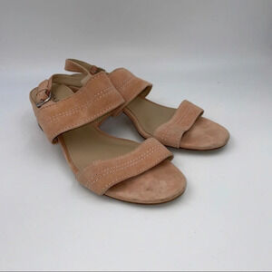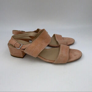 Via Spiga peach suede leather sling back open toe kitten block heel sandals