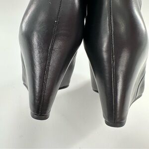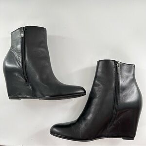 Via Spiga womens ankle booties size 7 37.5 black leather almond toe wedge boots