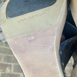 Via Spiga Black Leather Slip On Chunky Block Women's Heel Sandals Size 6.5