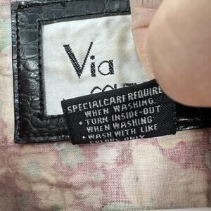 Notes: Unique textured cotton with colorful underlay for a statement look. Small discoloration/stain on the back of the sleeve. Please see photos.