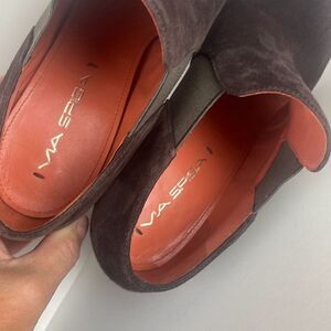 Condition: Gently worn with light overall signs of wear including scuffs/dust/break-in/wrinkling of the suede leather uppers/toes/heels, light wear to footbed liners, wear bottoms and heels/heel caps (see pics).