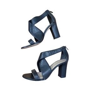 Via Spiga Womens Black Heels Criss Cross Strap Zip Closure Sandals Size 8.5