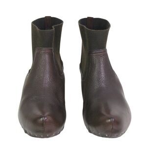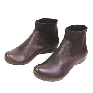 Vialis BROWN GENUINE LEATHER ELASTIC POINTED TOE WEDGE STUDS ANKLE BOOTS Sz 8