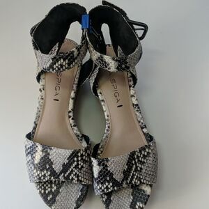 Via Spiga Nemy Open Toe snake print Leather Wedge Sandal these are new without tags. See pictures for details