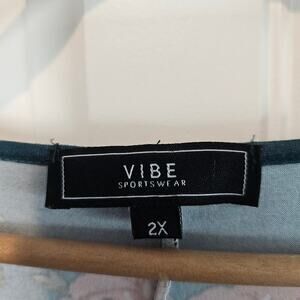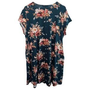 Vibe Floral Keyhole Swing Dress Womens Size 2X Green Boho Flowing Stretch Casual