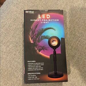 Vibe LED light with vibrant multicolor projection. Sleek black stand. Perfect for ambiance.