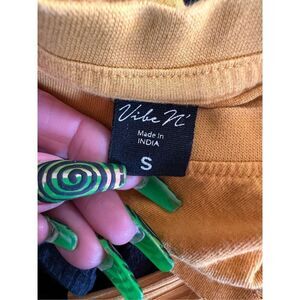 Vibe N’ Cropped Short Sleeve Top Mustard Yellow Embroidered CLASSIC across the f
