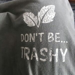 Vibe N Don’t Be Trashy Recycle olive Green Shirt. Long sleeve with screen printing on front and back . Soft cotton fabric. Fun environment friendly message. 🌿