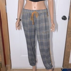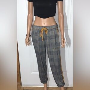 Vibe Plaid with yellow stripes soft plaid joggers with banded ankle XL New