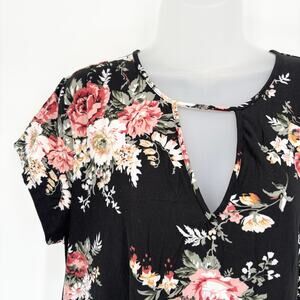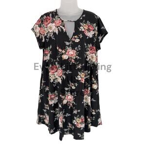 Vibe Sportswear Dress 2X Plus Size Swing Black Floral Keyhole Pockets Short Slv