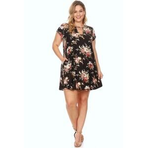 * Vibe Plus Dark Floral Keyhole Swing Dress JKD8997X