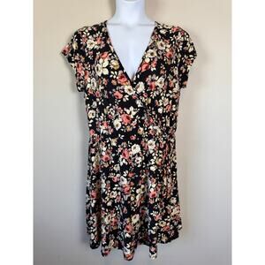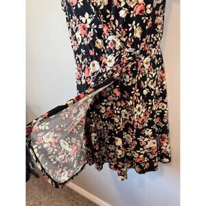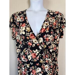 Vibe Sportswear Plus Size 2X Black Floral Print Wrap Dress Feminine Dark Cottage
