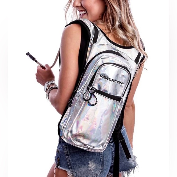 Perfect to take hiking and camping, or just to have for a long day at a music festival or night at a rave. Our VIP Silver Hydration Backpack will keep you looking ready to rave and hydrated no matter what the occasion.