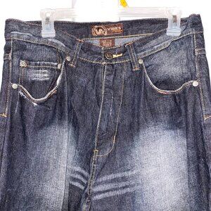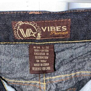 Very hip relaxed fit dark blue with faded design Vibes Premium brand Men's Jeans Size 34W X 32L. Make me an offer! Great condition!
