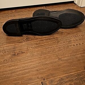 Vibram Capps Air-Lite Men's Black Shoes. Shiny Poromeric Upper, Cambrelle Lining, Full Poron Sock Lining on Contoured Heel Cup. Black Gloss Edge and Poly Sole. New Without Tags.