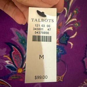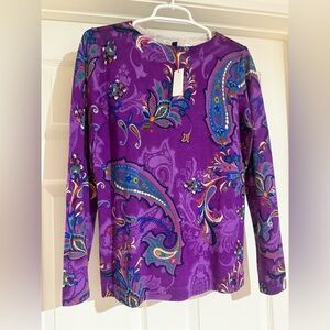 Brighten your style with this Talbots purple paisley top. Features intricate patterns and long sleeves.