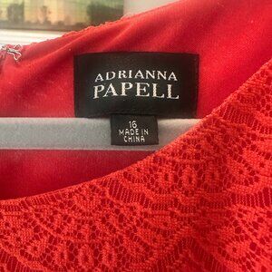 This stunning dress features a vibrant coral lace bodice and cap sleeves, paired with a colorful floral print skirt in shades of coral, green, yellow, and navy. The flattering silhouette includes a fitted waist that transitions into a knee-length skirt. The dress is in excellent condition and the color combination is both bold and sophisticated - perfect for someone who wants to make a stylish statement while enjoying the practical luxury of pockets! :)