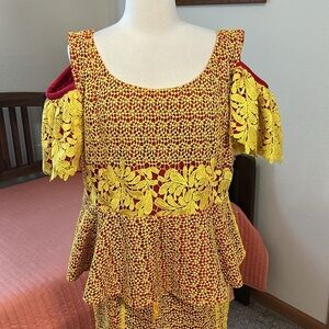 Vibrant African Ankara Style Lace Top & Skirt Set approximate size XL-XXL