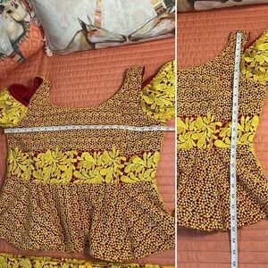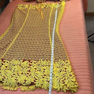 Vibrant African Lace Top & Skirt Set approximate size XL- XXL see measurements for proper fit. Skirt has draw string for a secure adjustable fit.