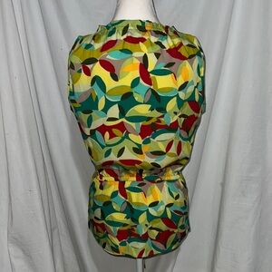 Vibrant Banana Republic Leaf Pattern ruffly sleeveless blouse size small