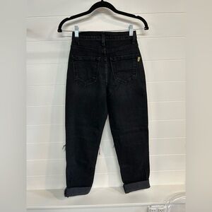 Vibrant Black Ankle Cropped Jeans with Distressed Knees
