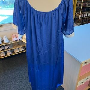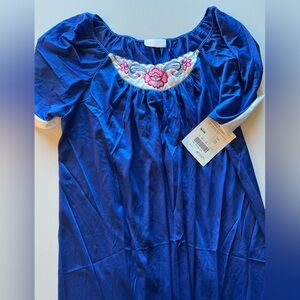 Charming blue vintage satiny nightgown with intricate floral embroidery on the neckline. One size fits most. New with tags!