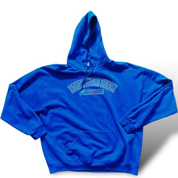 Vibrant Blue Hoodie with North Miami Beach Chargers Graphic - Size Large