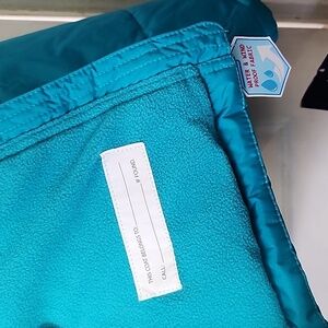 This vibrant blue puffer jacket is designed for cold weather with its cozy construction. The attached hood enhances warmth and protection, while the smooth outer fabric offers water resistance for outdoor activities.