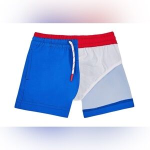 Vibrant Blue Kids Swim Trunks with Red Accent