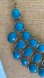 This striking layered necklace features a vibrant turquoise blue color with multiple strands creating a beautiful bib-like effect. The design includes small round turquoise beads arranged in a cascading pattern, complemented by silver-toned metal components that enhance its bold appearance.