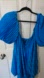 Stunning blue dress with pleated design. Features puff sleeves for a chic look.