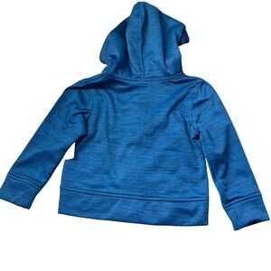 This eye-catching blue sweatshirt features a full-length zipper and a cozy hood, ideal for casual outings. Its sporty design and long sleeves ensure comfort and style for everyday wear.