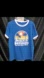 Vibrant Blue and White Short Sleeve Tee with Sunset Graphic