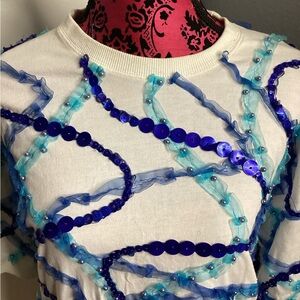 This stylish women's top features a vibrant blue and white design, perfect for adding a pop of color to your wardrobe. Ideal for casual outings.