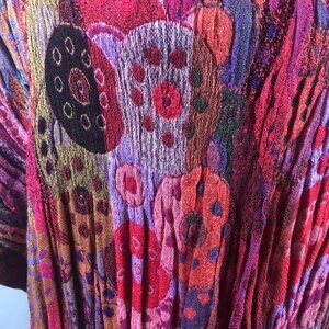 Made from 100% rayon with a soft, lightweight drape, it’s perfect for layering as a wrap, scarf, or oversized accessory. The bold patterning and artisanal feel make this an ideal piece for anyone who loves color, creativity, and unique art-to-wear styling.