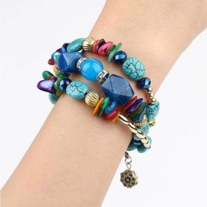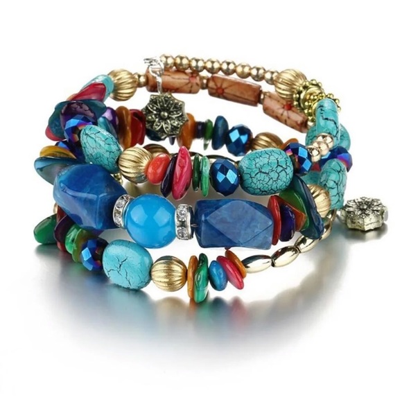 Vibrant boho hues fantasy beads layered bracelet. Matches Tieks shoes very well! Comes in felt bag and box, brand new