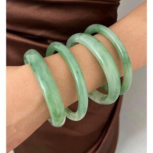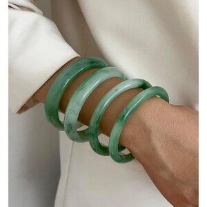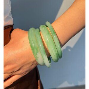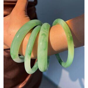 Features: These chunky acrylic bangles are designed to stand out with their vibrant green hue and varied widths (1.7cm, 1.7cm, 0.8cm, 0.8cm). No clasps needed — just slip them on for an instant style upgrade. Ideal for slender wrists, offering a snug but comfortable fit.