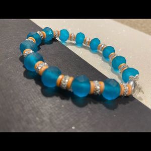 Endless Summer” Stackable Charm Bracelet. Handmade with love. Sparkles, luster, vibrantly colored: Flamingo Pink, Beach Wave Blues, Pineapple Yellow.