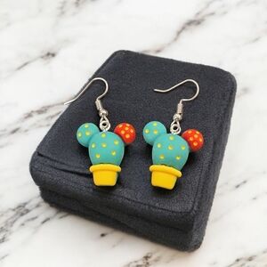 Vibrant Cactus Charm Earrings with Silver Hooks
